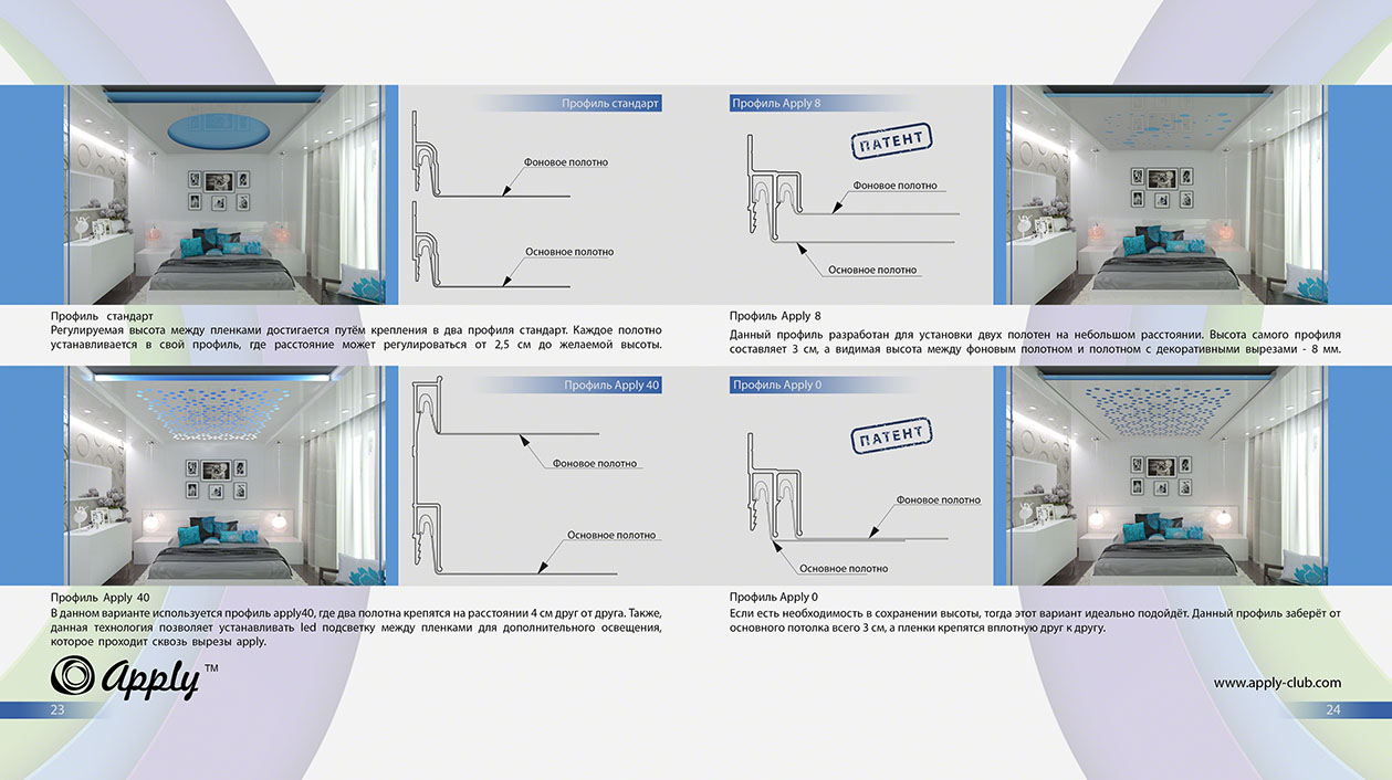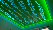 Перфорированные отверстия делают натяжной потолок как бы полупрозрачным, а свет от светильников, расположенных над натяжным потолком, будет проходить через потолок в помещение, преломляясь и создавая неповторимые световые эффекты.