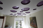 Есть еще один необычный способ использования перфорированных натяжных потолков - монтаж полупрозрачного полотна над перфорированным. Полупрозрачный натяжной потолок декоративен, он смягчит свет, падающий сверху, который в свою очередь рассеет перфорированный потолок. Такая игра света реализует все творческие идеи при создании неповторимого интерьера помещения.